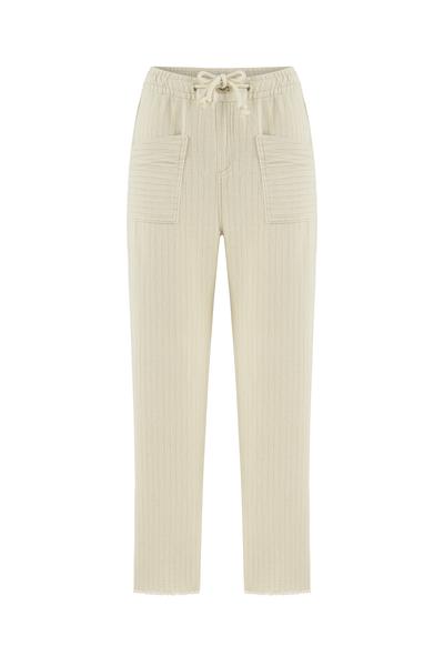 Mudo Bej Çizgili Havuç Kesim Pantolon