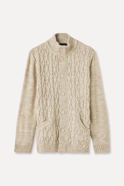 > > Mudo Bej Örgülü Dik Yaka Hirka