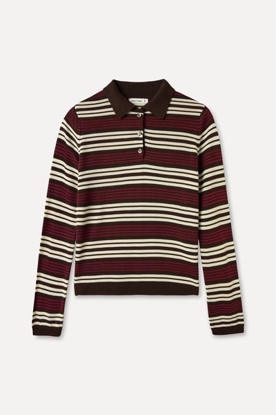 > > Mudo Kahverengi Çizgili Polo Yaka Triko Kazak