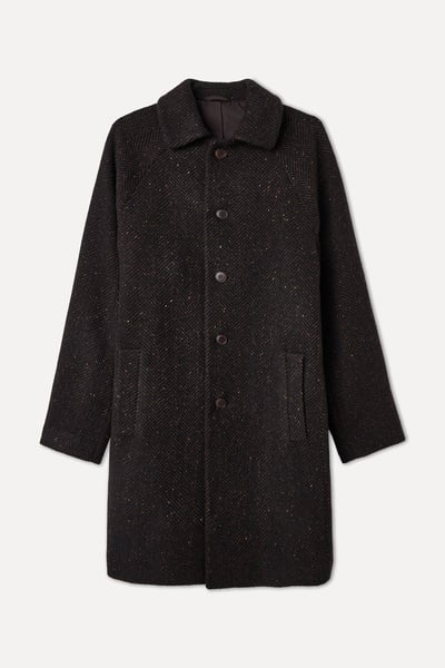 > > Mudo Kahverengi Yün Karışımlı Uzun Kaşe Kaban