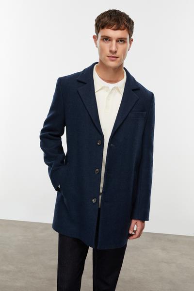 > > Mudo Lacivert Yün Karışımlı Kaşe Kaban