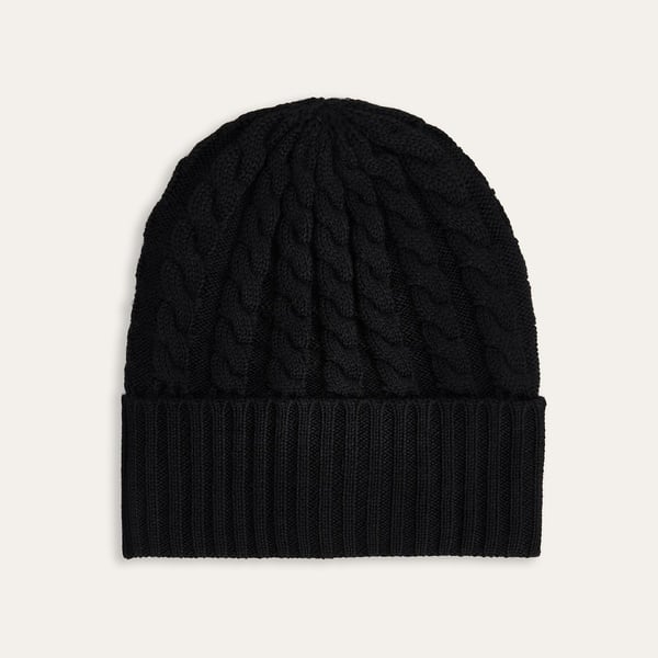 > > Mudo Siyah Yün Karışımlı Örgülü Bere